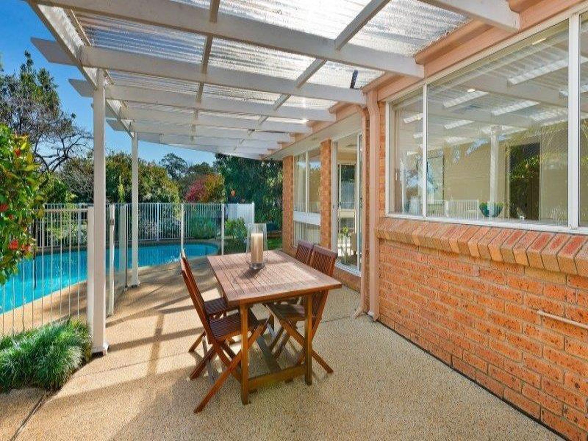 - sparkling glass fenced, in ground swimming pool