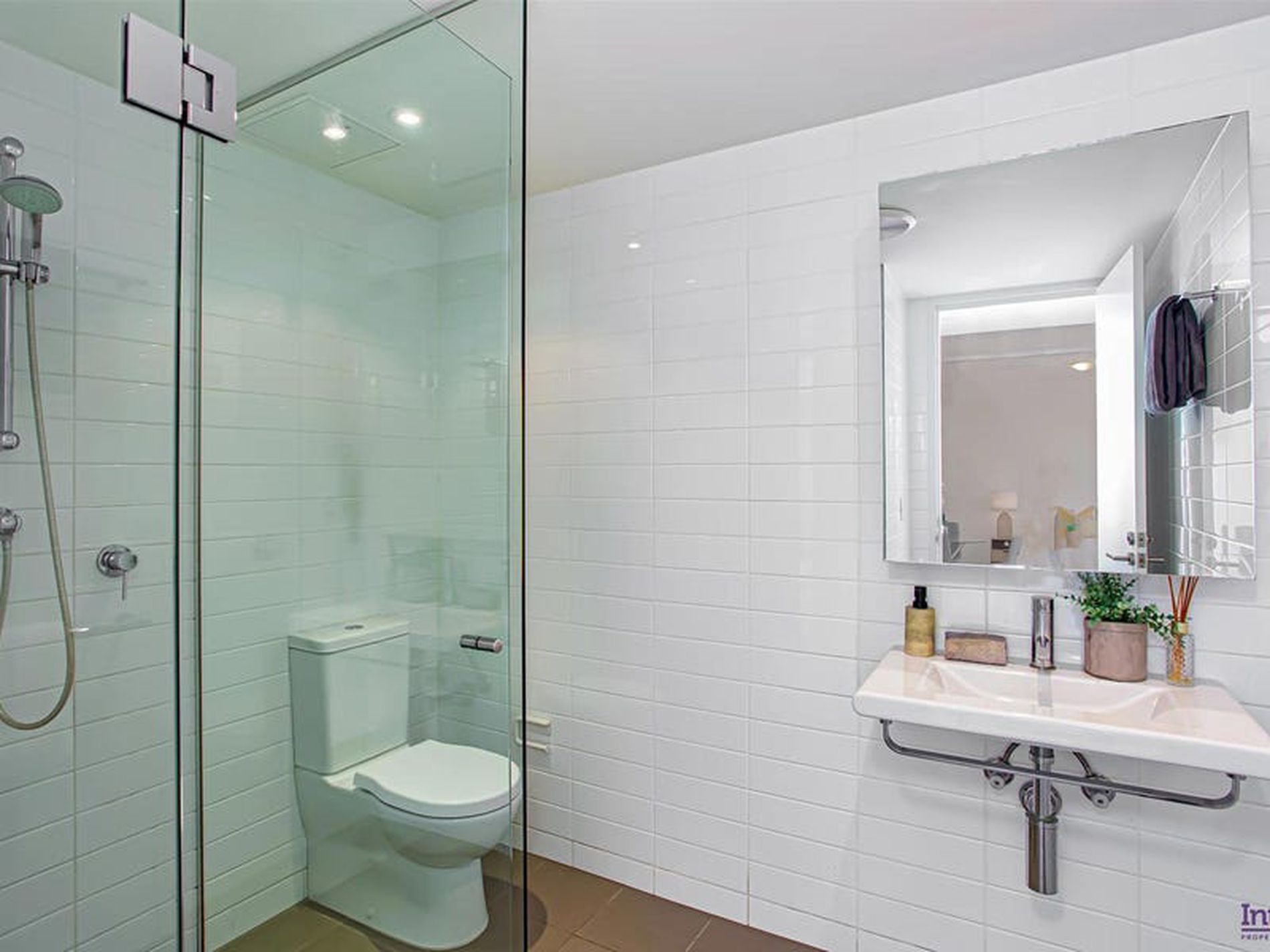 - Bathroom featuring European accessories and frameless glass shower screens