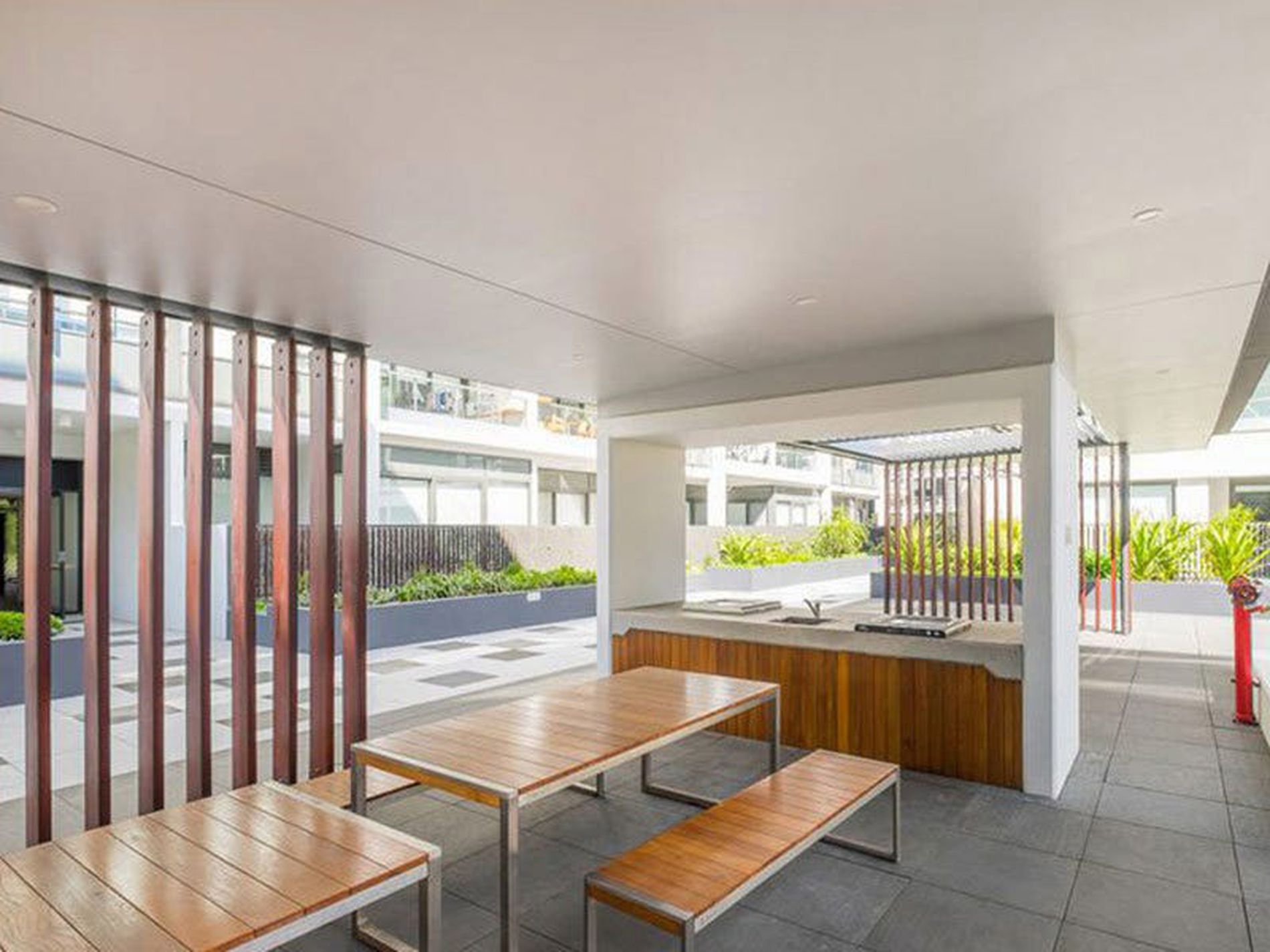 - Spacious open plan living/dining areas with floorboards leading to undercover entertainers balcony