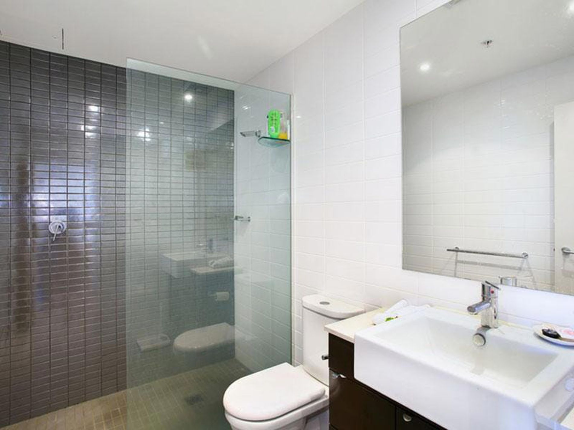 - Modern tiled bathroom with luxury finishes and practical internal laundry with dryer