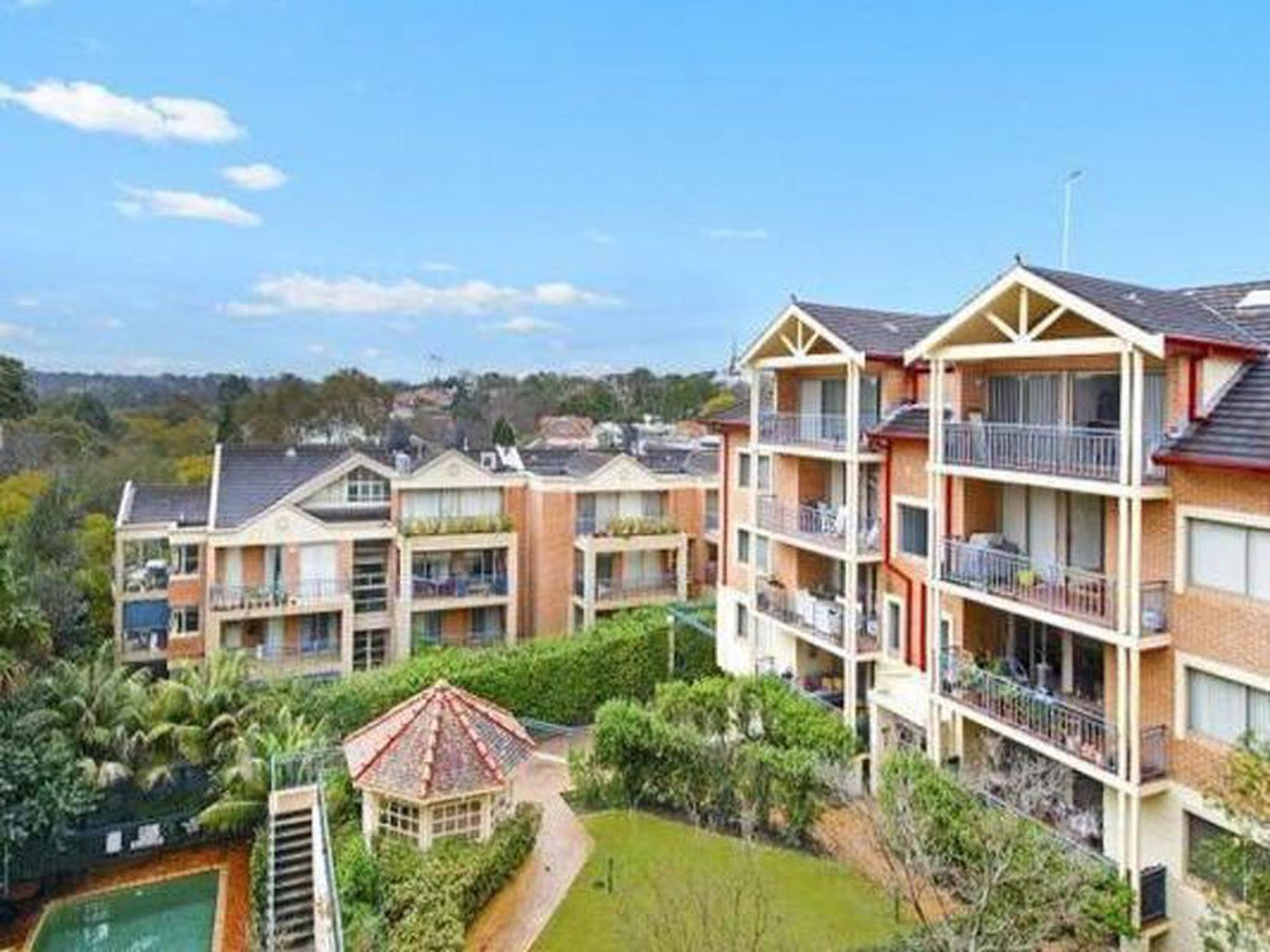 - Landscaped communal gardens, pool, sauna, barbecue area