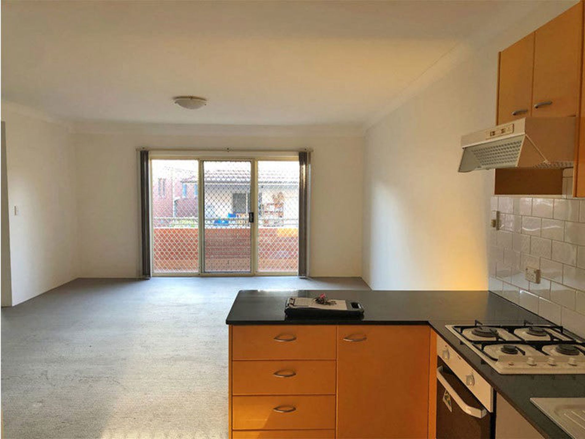 - Modern kitchen with gas cook top and stone bench top