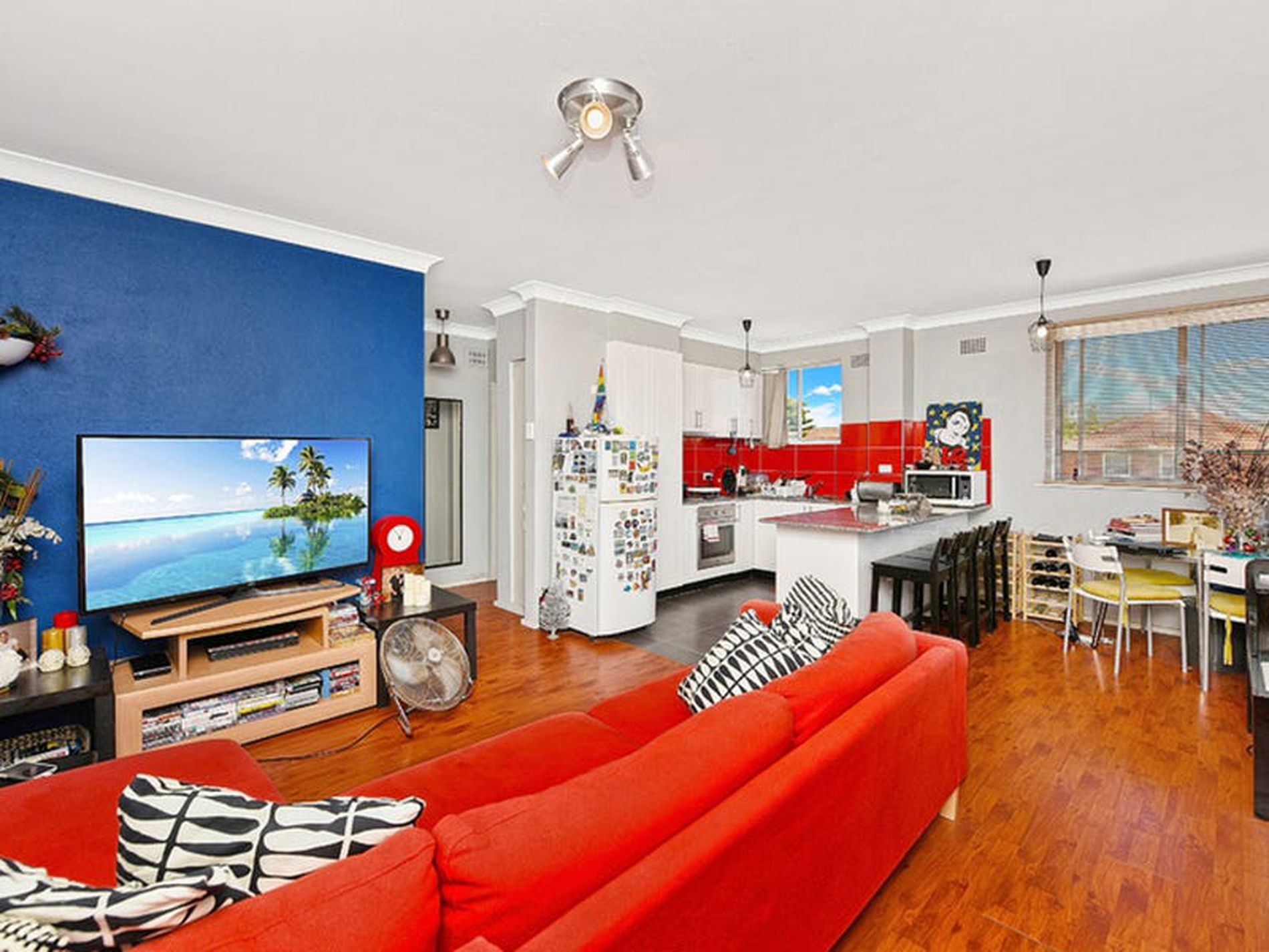 - Large combined lounge and dining area with large windows