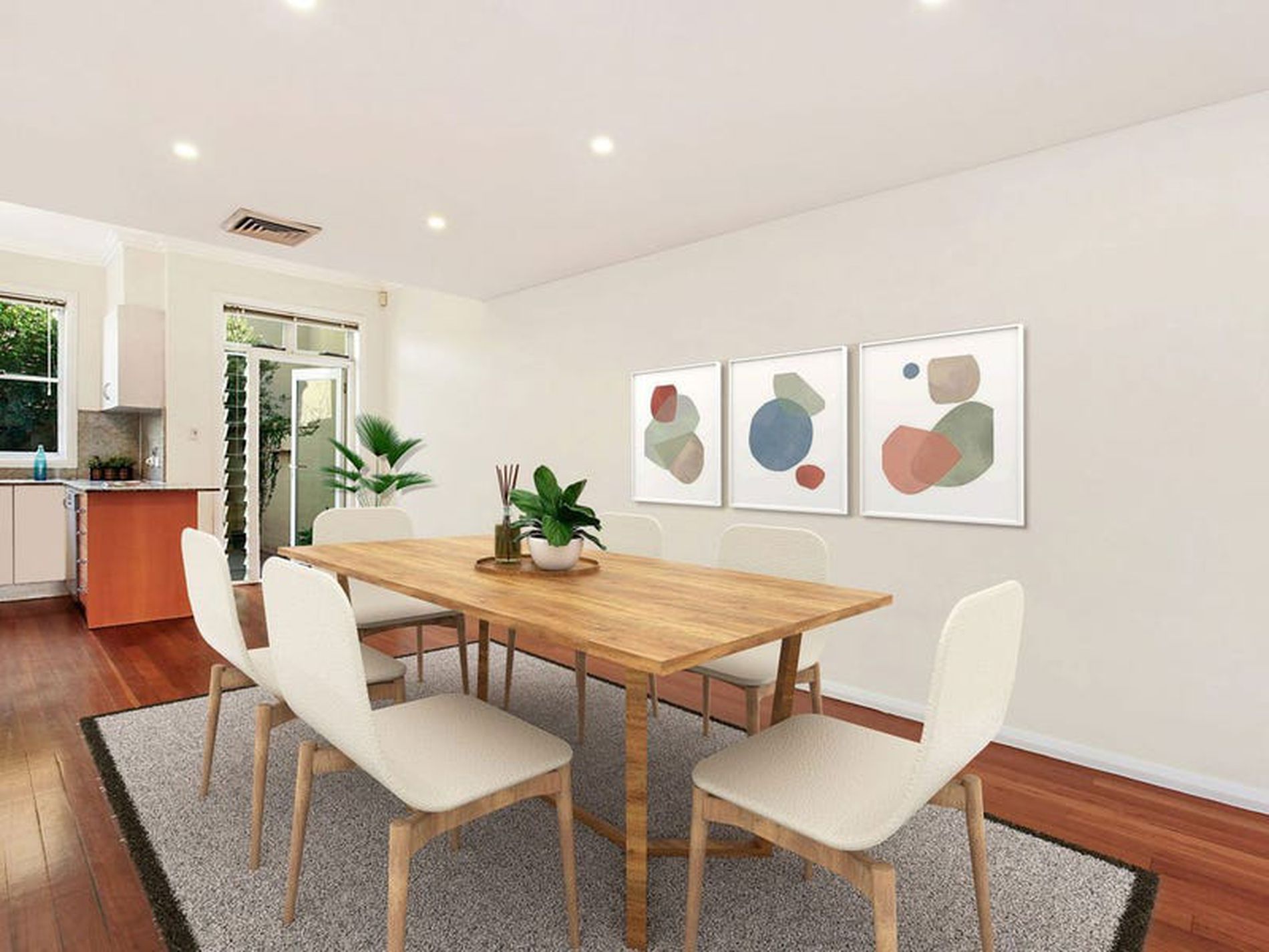 - Spacious open plan living and dining leading to private rear courtyard